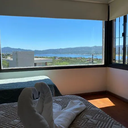 De gesitueerde in Villa Carlos Paz La Casita Villa beschikt over een flatscreen TV met satellietzenders en uitzicht op de tuin.